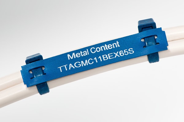 Rilevabili al metal detector. Per l'identificazione di cavi in industrie alimentari e farmaceutiche. Resistenza chimica eccellente. Resistente alle alte temperature. Non brucia. Le targhette TIPTAG MC sono state sviluppate specificatamente per applicazioni dove il materiale deve essere rilevabile al metal detector. All'interno delle targhette sono state inserite piccole particelle metalliche per renderle idonee ad applicazioni nell'industria alimentare e farmaceutica, per l'identificazione di cavi, fili e cablaggi. Il design delle TIPTAG MC prevede delle perforazioni adatte all'inserimento di fascette (serie MCT a contenuto metallico).Da stampare direttamente dalla bobina con le stampanti premium a trasferimento termico di HellermannTyton.