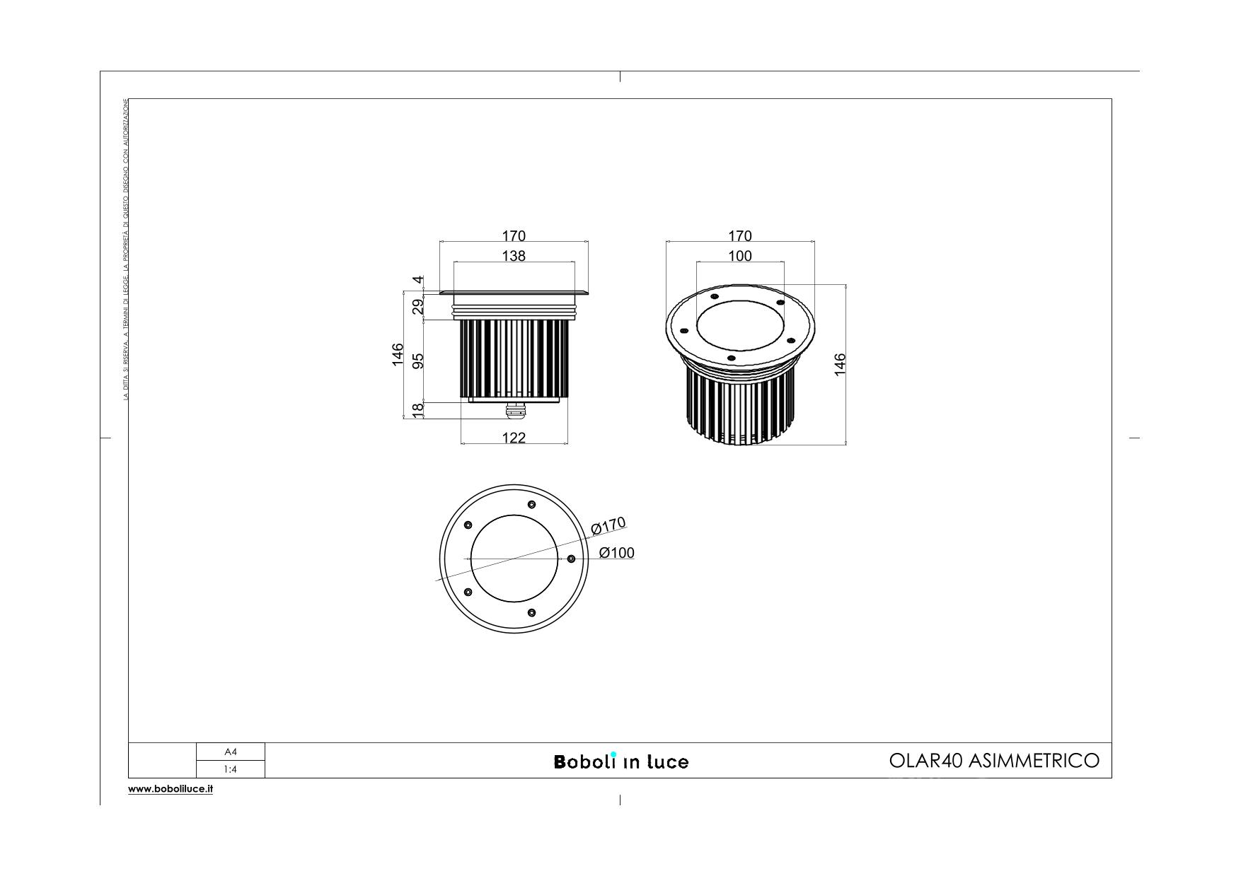 OLAR ASIMMETRICO 40 INCASSO IP67 230V 40W 15X70 3000K; INCASSO PER ESTERNO CARRABILE, CORPO E CONTROCASSA IN LEGA EN AW 6063 RICAVATO DA LAVORAZIONE MECCANICA A CNC PROTETTO CON PROCESSO DI PASSIVAZIONE GHIERA IN ACCIAIO INOX AISI 316L OTTICA ASIMMETRICA