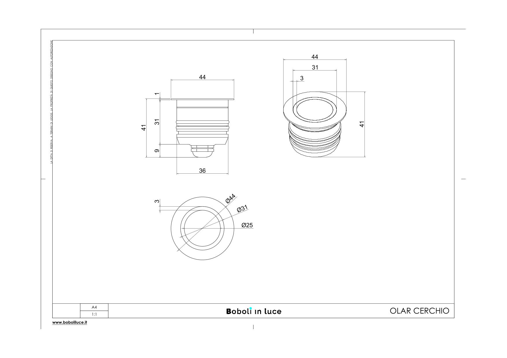 OLAR CERCHIO INCASSO PASSIVATO IP67 PASSIVATO BIANCO 2W 24V 3000K; INCASSO PER ESTERNO CARRABILE, CORPO E CONTROCASSA IN LEGA EN AW 6063 RICAVATO DA LAVORAZIONE MECCANICA A CNC PROTETTO CON PROCESSO DI PASSIVAZIONE GHIERA IN ACCIAIO INOX AISI 316L