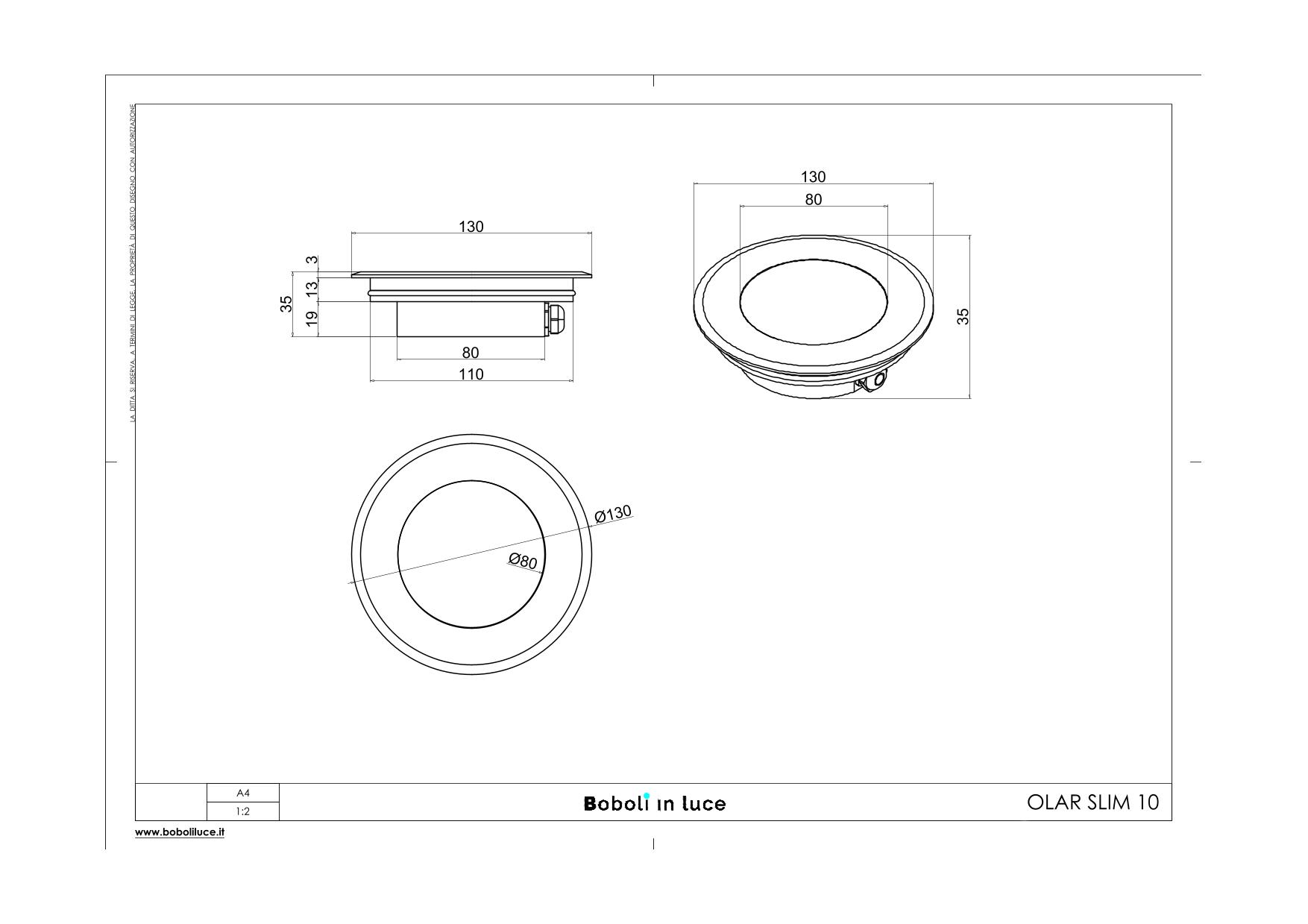 OLAR SLIM10 INCASSO IP67 24V 10W 10° 4000K; INCASSO BASSO SPESSORE PER ESTERNO CARRABILE, CORPO E CONTROCASSA IN LEGA EN AW 6063 RICAVATO DA LAVORAZIONE MECCANICA A CNC PROTETTO CON PROCESSO DI PASSIVAZIONE GHIERA IN ACCIAIO INOX AISI 316L