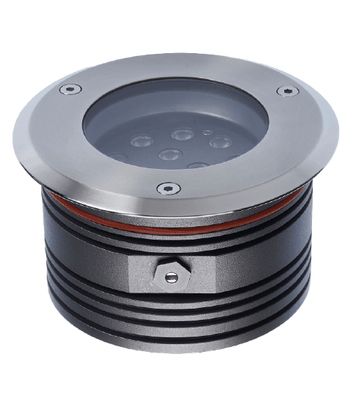ORIENT24 BASCULANTE PASSIVATO 24V 24W 60° 4000K; INCASSO PER ESTERNO CARRABILE, CORPO E CONTROCASSA IN LEGA EN AW 6063 RICAVATO DA LAVORAZIONE MECCANICA A CNC PROTETTO CON PROCESSO DI PASSIVAZIONE GHIERA IN ACCIAIO INOX AISI 316L FASCIO DI LUCE ORIENTABILE E BIDIREZIONALE
