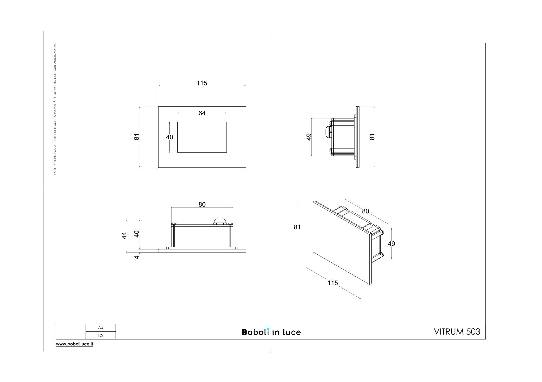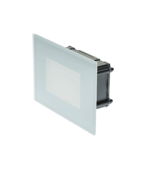 VITRUM503 12V 5W 4000K PER 503 ON/OFF;INCASSO PER SCATOLA 503 IN LEGA EN AW 6063 RICAVATO DA LAVORAZIONE MECCANICA A CNC PROTETTO CON PROCESSO DI PASSIVAZIONE, SCHERMO TOTALE IN VETRO AD ALTO SPESSORE SERIGRAFASTO E SMERIGLIATO