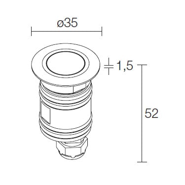 Bright 1.0 316L - Incasso uplight da esterno e immersione; a incasso (parete, pavimento), profondità massima 10 m; corpo e ghiera in acciaio inox AISI 316L, schermo in vetro temprato; 1 power LED; max 2W - max 500mA; incluso cavo in neoprene di 5 m H05RN-F 2x0,35/0,75 Ø6,3 mm; collegamento in serie; ottiche: 40°; colore LED: blu; grado di protezione: IP68; grado di resistenza: IK10; dotato di sistema IPS; temperatura schermo: max 40°C (Ta 25°C); Glow Wire Test: 960°; sicurezza fotobiologica: gruppo rischio 1 secondo EN62471:2006; classe di isolamento III; peso 0,48 kg; dimensioni Ø35x52 mm; foro d’incasso: 30 mm; dimmerazione disponibile mediante alimentatore dimmerabile; accessori: cassaforma WC5003. LED blu 2W 500mA 40°.