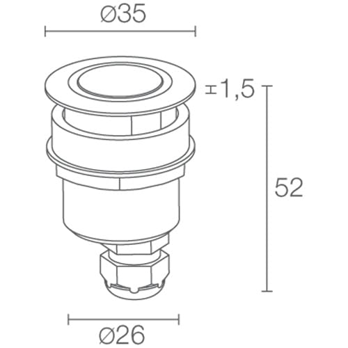 Bright 1.2 codice: CB12123WAI incasso uplight da esterno (non adatto per immersione in piscine e fontane) calpestabile a incasso su lastra, spessore: min 0 mm, max 30 mm Potenza: max 2W Alimentazione: max 500mA Flusso sorgente: 145 lm (3000K, 500mA) Flusso emesso: 88 lm (3000K, 500mA, 20°) 1 power LED, 1/4 ANSI BIN, 50000h L95 B10 (Ta 25°C) Colore LED: rosso Ottiche: 10°x45° Materiale corpo: corpo e ghiera in acciaio inox AISI316L Finitura RAL su richiesta Materiale schermo: schermo in vetro temprato trasparente alimentatore non incluso Collegamento: in serie incluso cavo in neoprene di 1,5 m H05RN-F 2x0,35/0,75 Ø6,3 mm Grado di protezione: IP68 Grado di resistenza: IK10 Sistemi di protezione: IPS (Intelligent Protection System) protegge gli apparecchi illuminanti da infiltrazioni d’acqua che possono verificarsi in caso di errori di giunzione tra i cavi per applicazioni da esterno e immersione. Questa innovazione brevettata da L&L garantisce inoltre protezione elettrica da inversione di polarità, hotplug, ESD e sovratensioni che possono verificarsi in caso di malfunzionamenti dell’impianto elettrico Temperatura di esercizio: -20°C — +45°C Temperatura massima apparecchio: 50°C (Ta 25°C) Glow wire test: 960° Sicurezza fotobiologica: gruppo rischio 1 secondo EN 62471:2006 Classe di isolamento: III Peso: 200 g Dimensioni: Ø35x52 mm Foro d’incasso: Ø30 mm Volume tecnico per dissipazione: Ø80x100 mm Classe di consumo energetico: A / A+ / A++ Accessori: WF5005 Cavo in neoprene - 5 m H05RN-F 2x0,35/0,75 Ø6,3 mm - IPS, WF5010 Cavo in neoprene - 10 m H05RN-F 2x0,35/0,75 Ø6,3 mm - IPS, WF5015 Cavo in neoprene - 15 m H05RN-F 2x0,35/0,75 Ø6,3 mm - IPS, WF5020 Cavo in neoprene - 20 m H05RN-F 2x0,35/0,75 Ø6,3 mm - IPS, WH0101 Nido d’ape Testato e approvato tramite E.O.L. test (End Of Line test) con prova di funzionamento e verifica dei parametri elettrici di assorbimento.
