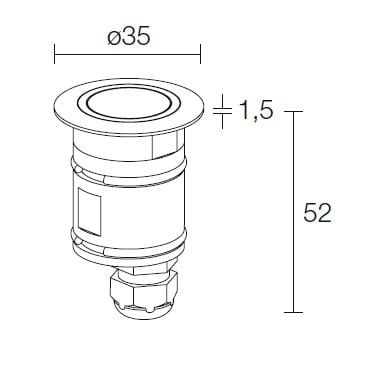 Bright 1.6 - Incasso da esterno (non adatto per immersione); a incasso (parete, pavimento); corpo e ghiera in acciaio inox AISI 316L, schermo in vetro trasparente temprato; 1 power LED; 2W - 24Vdc; incluso cavo in neoprene di 1,5 m H05RN-F 2x0,35/0,75 Ø6,3 mm; collegamento in serie; ottica 40°; colore LED: bianco - 4000K; grado di protezione: IP68; grado di resistenza: IK10; dotato di sistema IPS; temperatura di esercizio: -20°C +45°C; temperatura schermo: max 40°C (Ta 25°C); sicurezza fotobiologica: gruppo rischio 1 secondo EN62471:2006; classe di isolamento III; peso 0,20 kg; dimensioni corpo Ø35x52 mm; foro d’incasso Ø30 mm; volume tecnico per dissipazione : Ø80x100 mm; dimmerazione disponibile mediante dimmer in linea 24Vdc; accessori: cassaforma WC0201, cassaforma WC0202, molla di fissaggio WG0301 per installazione su cartongesso, nido d’ape WH0101. LED bianco 2W 4000K 40°.