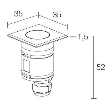 Bright 1.7 - Incasso da esterno (non adatto per immersione); a incasso (parete, pavimento); corpo e ghiera in acciaio inox AISI 316L, schermo in vetro trasparente temprato; 1 power LED; 2W - 24Vdc; incluso cavo in neoprene di 1,5 m H05RN-F 2x0,35/0,75 Ø6,3 mm; collegamento in serie; ottica 40°; colore LED: bianco - 4000K; grado di protezione: IP68; grado di resistenza: IK10; dotato di sistema IPS; temperatura di esercizio: -20°C +45°C; temperatura schermo: max 40°C (Ta 25°C); sicurezza fotobiologica: gruppo rischio 1 secondo EN62471:2006; classe di isolamento III; peso 0,20 kg; dimensioni corpo 35x35x52 mm; foro d’incasso Ø30 mm; volume tecnico per dissipazione : Ø80x100 mm; dimmerazione disponibile mediante dimmer in linea 24Vdc; accessori: cassaforma WC0201, cassaforma WC0202, molla di fissaggio WG0301 per installazione su cartongesso, nido d’ape WH0101. LED bianco 2W 4000K 40°.