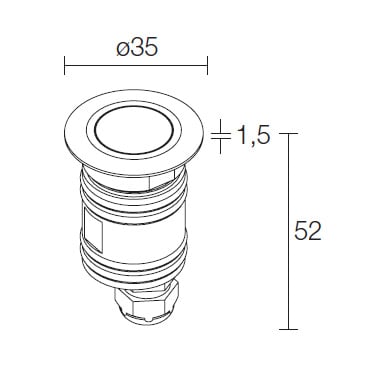 Bright 1.8 316L - Incasso uplight da esterno e immersione; a incasso (parete, pavimento), profondità massima 10 m; corpo e ghiera in acciaio inox AISI 316L, schermo in vetro temprato; 1 mid power LED full colour; 1,2W - 12Vdc; incluso cavo in neoprene di 5 m 05RN-F 4x0,50/0,50 Ø6,3 mm; flusso totale: R: 15 lm, G: 40 lm, B: 30 lm; ottiche: diffusa trasparente, diffusa sabbiata; colore LED: RGB; grado di protezione: IP68; grado di resistenza: IK10; dotato di sistema IPS; temperatura di esercizio: -20°C+45°C; temperatura schermo: max 40°C (Ta 25°C); Glow Wire Test: 960°; sicurezza fotobiologica: gruppo rischio 1 secondo EN62471:2006; classe di isolamento III; peso 0,48 kg; dimensioni Ø35x52 mm; foro d’incasso: 30 mm; dimmerazione disponibile mediante utilizzo di alimentatore a 3 uscite a tensione costante (opzionale); accessori: cassaforma WC5003. LED bianco 12W 3000K 590lm 40°.