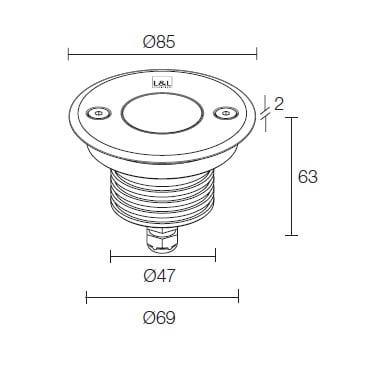 Bright 2.4 - Incasso da esterno (non adatto per immersione); carrabile fino a 2000 kg; a incasso (soffitto, parete, pavimento); corpo in acciaio inox AISI 316L o alluminio anodizzato lega EN AW 6082, ghiera in acciaio inox AISI 316L o alluminio, schermo in vetro extrachiaro trasparente temprato; finiture: acciaio inox, grigio; 1 power LED; 5W; incluso cavo in neoprene di 1,5 m H05RN-F 2x0,75/0,75 Ø6,3 mm; collegamento in serie; ottica: 34°; colore LED: bianco - 4000K; 352 lm (34°, 5W, CRI 80); 284 lm (34°, 5W, CRI 90); grado di protezione: IP68; grado di resistenza: IK10; dotato di sistema IPS; temperatura di esercizio: -20°C +45°C; temperatura schermo: max 40°C (Ta 25°C); Glow Wire Test: 960°; sicurezza fotobiologica: gruppo rischio 1 secondo EN62471:2006; classe di isolamento III; peso 0,44 kg (ghiera in acciaio inox); dimensioni corpo Ø85x63mm; foro d’incasso ø70 mm; volume tecnico per dissipazione: Ø180x125mm; dimmerazione disponibile mediante dimmer in linea 24Vdc, accessori: cassaforma WC0100, cassaforma WC0103, molla di fissaggio WG0100, nido d’ape WH0201. LED bianco 5W 4000K 34°.