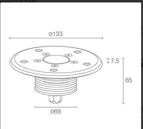 Bright 2.6 316L - Incasso uplight da esterno e immersione; a incasso (parete, pavimento), profondità massima 10 m; corpo e ghiera in acciaio inox AISI 316L, schermo in vetro extrachiaro temprato trasparente; 3 power LED; max 6W (3 power LED x 2W) - 24Vdc; incluso cavo in neoprene di 5 m H05RN-F 2x0,75/0,75 Ø6,3 mm; collegamento in parallelo; otticca: 38°; colore LED: bianco - 4000K; grado di protezione: IP68; grado di resistenza: IK10; dotato di sistema IPS; temperatura max apparecchio: 50°C (Ta 25°C); Glow Wire Test: 960°; sicurezza fotobiologica: gruppo rischio 1 secondo EN62471:2006; classe di isolamento III; peso 1,60 kg; dimensioni Ø133x65 mm; dimmerazione disponibile mediante alimentatore dimmerabile; accessori: cassaforma WC5002, accessorio con guaina PVC WC5102. LED bianco 3x2W 4000K 38°.