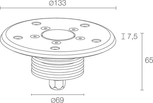 Incasso uplight da esterno e immersione; a incasso (parete, pavimento), profondità massima 10 m; corpo e ghiera in acciaio inox AISI 316L, schermo in vetro extrachiaro temprato trasparente. 6W. 24VDC. 5000 K. 24°. Colore Inox. 436 lm