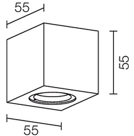 Apparecchio a plafone da interno o esterno; 6W - 350/500mA; 3 power LED; 5000K; CRI: 75÷85; ottica con schermo frontale satinato: 28°; corpo in alluminio anticorodal estruso, schermo in policarbonato mono-satinato; finitura bianco; temperatura di esercizio: -10°C +45°C; temperatura vetro: max 40°C (Ta 25°C); grado di protezione contro i liquidi e i corpi solidi: IP54; sicurezza fotobiologica: gruppo rischio 1 secondo EN62471:2006; montaggio con viti e tasselli; classe di isolamento III; peso 0,33kg; dimensioni 55x55x55mm; collegamento in serie con 2 cavi unipolari da 30cm; dimmerazione disponibile mediante alimentatore dimmerabile.