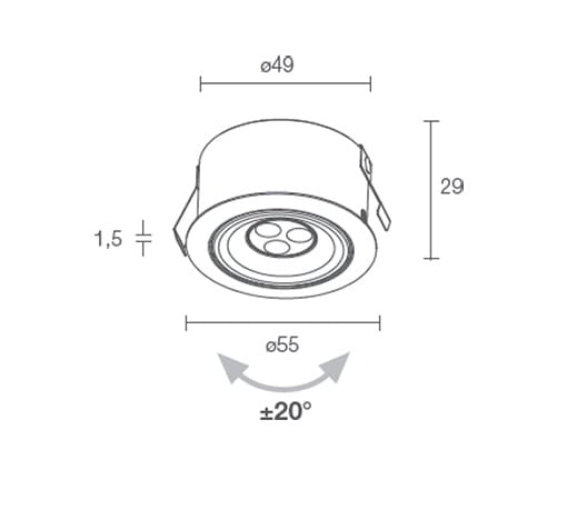 Apparecchi da incasso a LED, ideali per illuminazione generale e di effetto. Caratterizzati da un design discreto ed elegante e dalle dimensioni ridotte, sono ideali per illuminare teche, vetrine o piccole nicchie. Esem Mini è installabile in controsoffitti di spessore da 5 mm a 25 mm, tramite molle in acciaio inox. MATERIALI: Corpo in alluminio lega EN AW 6026 con trattamento di anodizzazione bianca. Cornice con trattamento di anodizzazione bianca. FINITURA: Bianco opaco RAL9003; INSTALLAZIONE: Il prodotto viene normalmente installato ad incasso con molle. EMISSIONE: Il prodotto propone ottiche orientabili (±20°): larga. LED 3W 220Lm 3000K 30°.