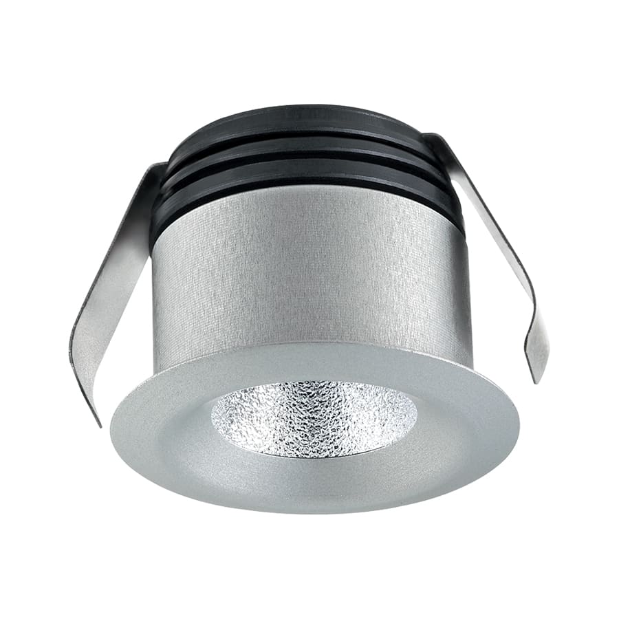 Mini incasso downlight da interno; a incasso (soffitto); corpo e ghiera in alluminio anodizzato lega EN AW 6082. 2W. 24VDC. 3000K. Colore Bianco. 27°. 125 lm