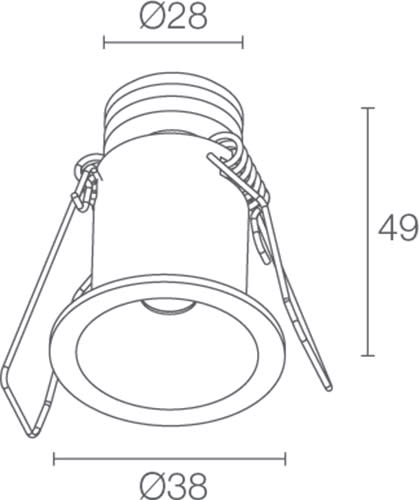 Esem 2.0 codice: ES20125SEB incasso downlight da interno a incasso (soffitto) Potenza: max 2W Alimentazione: max 500mA Flusso sorgente: 145 lm (3000K, 500mA) Flusso emesso: 122 lm (3000K, 500mA, 36°) 1 power LED, 1/4 ANSI BIN, 50000h L90 B10 (Ta 25°C) Colore LED: 3000K Ottiche: 16° Materiale: corpo in alluminio Finiture: bianco Finitura RAL su richiesta Spessore della superficie d’incasso: min 5 mm, max 25 mm alimentatore non incluso Collegamento: in serie incluso cavo in PVC di 1,5 m FROR 2x0,35 Ø3,5 mm Grado di protezione: IP40, IP44 installato Sistemi di protezione: EPS protegge gli apparecchi per applicazioni da interno in caso di problematiche di carattere elettrico. Questa innovazione brevettata da L&L garantisce protezione elettrica da inversione di polarità, hotplug e sovratensioni fino a 48Vdc che possono verificarsi in caso di malfunzionamenti dell’impianto elettrico Temperatura di esercizio: 0°C — +45°C Temperatura massima apparecchio: 40°C (Ta 25°C) Sicurezza fotobiologica: gruppo rischio 1 secondo EN 62471:2006 Classe di isolamento: III Peso: 90 g Dimensioni: Ø38x49 mm Foro d’incasso: Ø30 mm Volume tecnico per dissipazione: Ø130x90 mm Classe di consumo energetico: A / A+ / A++ Accessori: WF0110 Cavo in PVC FROR 2x0,35 Ø3,5 mm Testato e approvato tramite E.O.L. test (End Of Line test) con prova di funzionamento e verifica dei parametri elettrici di assorbimento.