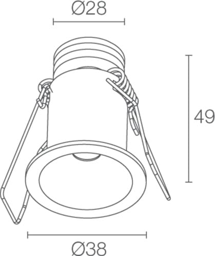 Esem 2.0 codice: ES20129SEB incasso downlight da interno a incasso (soffitto) Potenza: max 2W Alimentazione: max 500mA Flusso sorgente: 145 lm (3000K, 500mA) Flusso emesso: 122 lm (3000K, 500mA, 36°) 1 power LED, 1/4 ANSI BIN, 50000h L90 B10 (Ta 25°C) Colore LED: 4000K Ottiche: 16° Materiale: corpo in alluminio Finiture: bianco Finitura RAL su richiesta Spessore della superficie d’incasso: min 5 mm, max 25 mm alimentatore non incluso Collegamento: in serie incluso cavo in PVC di 1,5 m FROR 2x0,35 Ø3,5 mm Grado di protezione: IP40, IP44 installato Sistemi di protezione: EPS protegge gli apparecchi per applicazioni da interno in caso di problematiche di carattere elettrico. Questa innovazione brevettata da L&L garantisce protezione elettrica da inversione di polarità, hotplug e sovratensioni fino a 48Vdc che possono verificarsi in caso di malfunzionamenti dell’impianto elettrico Temperatura di esercizio: 0°C — +45°C Temperatura massima apparecchio: 40°C (Ta 25°C) Sicurezza fotobiologica: gruppo rischio 1 secondo EN 62471:2006 Classe di isolamento: III Peso: 90 g Dimensioni: Ø38x49 mm Foro d’incasso: Ø30 mm Volume tecnico per dissipazione: Ø130x90 mm Classe di consumo energetico: A / A+ / A++ Accessori: WF0110 Cavo in PVC FROR 2x0,35 Ø3,5 mm Testato e approvato tramite E.O.L. test (End Of Line test) con prova di funzionamento e verifica dei parametri elettrici di assorbimento.