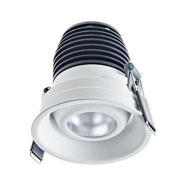 Apparecchio a incasso da interno; 14W - 230Vac 50Hz; 1 power LED Multi-chip; 3000K; CRI: >80; ottiche orientabili ±25°: 40°; flusso totale: 955 lm (3000K); corpo in alluminio lega EN AW 6012 con trattamento di anodizzazione nera, cornice in alluminio lega EN AW 6012 verniciata bianco opaco Ral9003, schermo protettivo in PMMA ad alta riflettanza; finitura: bianco; temperatura di esercizio: 0°C +45°C; grado di protezione contro i liquidi e i corpi solidi: IP40; sicurezza fotobiologica: gruppo rischio 1 secondo EN62471:2006; montaggio a incasso con molle in Acciaio Inox in controsoffitti di spessore da 5mm a 25mm; classe di isolamento II; peso 0,50kg; dimensioni Ø89x95mm; foro d'incasso ø80mm; volume d'ingombro: Ø200x200mm; collegamento 230Vac 50Hz, cablato con alimentatore; dimmerazione disponibile mediante DALI, 1-10V, PUSH; in dotazione: alimentatore cablato, ad alta efficienza e PFC attivo; dimensioni alimentatore: 168x37x33 mm, 111x52x22 mm (1-10V + PUSH), 167x42x31 mm (DALI + PUSH).