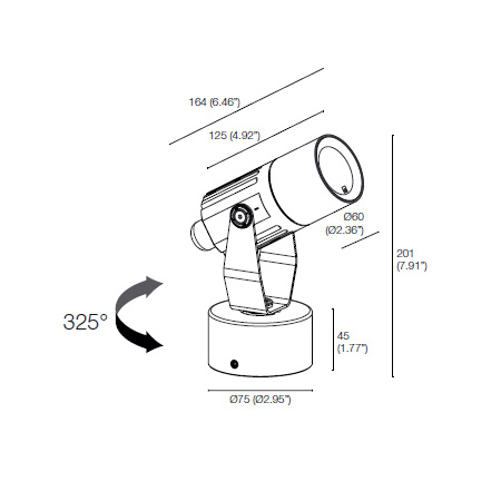 Flori 1.1 - Proiettore da interno ed esterno; orientabile 325°; su superficie (soffitto, parete, pavimento); corpo in alluminio, schermo in vetro temprato e serigrafato; finiture: grigio; 1 power LED High Intensity; 7W - 230Vac; alimentatore integrato; incluso cavo in neoprene di 1,5 m H05RN-F 3x1,0 Ø7 mm; flusso emesso: 340 lm (3000K, CRI 80), 296 lm (3000K, CRI 90); ottica: 36°; colore LED: bianco - 3000K; versioni CRI 80 e CRI 90; grado di protezione: IP66; grado di resistenza: IK06; dotato di sistema IPS e PID; temperatura di esercizio: -20°C +45°C; temperatura schermo: max 40°C (Ta 25°C); sicurezza fotobiologica: gruppo rischio 1 secondo EN62471:2006; classe di isolamento I (230Vac); peso 1,10 kg; dimensioni Ø60x163,5x147 mm; accessori: nido d'ape, cannocchiale standard, cannocchiale asimmetrico, alette frangiluce nere, picchetti per installazione a terra, picchetto per installazione a parete. LED bianco 7W 3000K 36°.