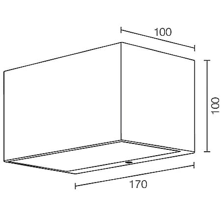 Applique da interno o esterno; 28W - 230Vac 50Hz; 2 matrici power LED; 3000K; CRI: 75÷85; luce diffusa; flusso totale: 831lm; corpo in alluminio presso-fuso lega EN AB 47100, schermo in vetro extrachiaro temprato con trattamento antigraffio di spessore 4mm; finitura: antracite outdoor; trattamento di verniciatura per esterni con polveri epossidiche, pre-trattamento antiossidante con processo Nanoceramico per la passivazione in preverniciatura di materiale ferroso, zincato e alluminio, resistenza al test di nebbia salina di 1000H; temperatura di esercizio: -10°C +45°C; grado di protezione contro i liquidi e i corpi solidi: IP65; grado di resistenza all'impatto IK07; Glow Wire Test: 960°; sicurezza fotobiologica: gruppo rischio 1 secondo EN62471:2006; montaggio con una piastra di fissaggio mediante viti e tasselli, disponibile accessorio distanziale; classe di isolamento I; peso 2,00kg; dimensioni 170x100x100mm; collegamento 230Vac 50Hz, con cavo fornito con muffola stagna al gel per cabla.