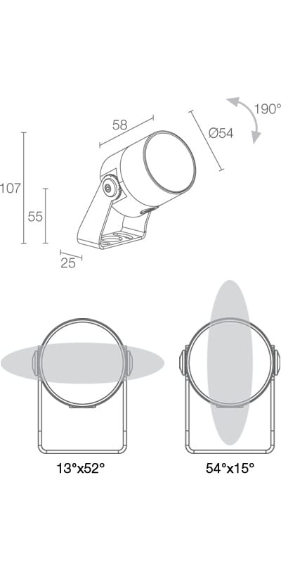 Proiettore da esterno; su superficie (soffitto, parete, pavimento, picchetto). 7W. 24 VDC. 3000 K. 11°. Colore Antracite. 657 lm