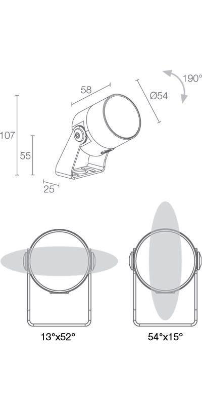 Proiettore da esterno; su superficie (soffitto, parete, pavimento, picchetto). 7W. 24 VDC. 3000 K. 68°. Colore Bianco. 657 lm