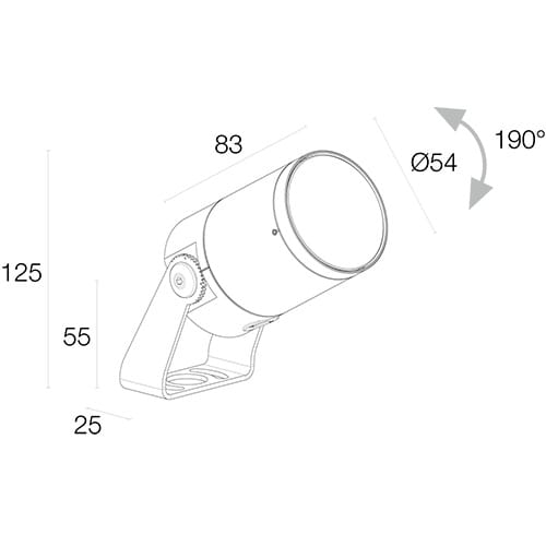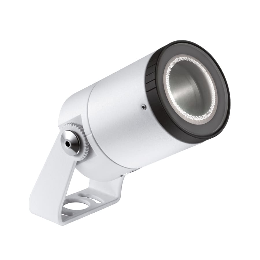 Proiettore da esterno; su superficie (soffitto, parete, pavimento, picchetto). 7W. 24 VDC. 3000 K. 9°-364. Colore Bianco. 657 lm