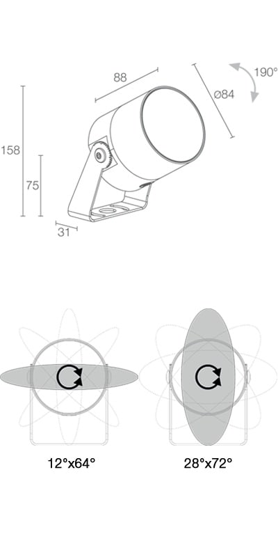 Proiettore da esterno; su superficie (soffitto, parete, pavimento, picchetto). 15W. 24 VDC. 4000 K. 30°. Colore Nero. 1662 lm