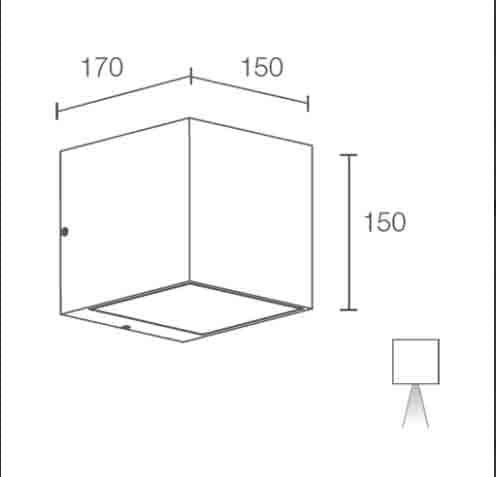 Kocca 3.1 - Applique da esterno; su superficie (parete); corpo in alluminio pressofuso lega EN AB 47100, schermo in vetro temprato; finiture: grigio; 9 power LED 18W, - 230Vac; alimentatore integrato; muffola per connessione con cavo di 0,50 m H05RN-F 2x0,75 Ø6,3 mm; ottica 7°; colore LED: bianco - 4000K; grado di protezione: IP65; grado di resistenza: IK05; temperatura di esercizio: -20°C +45°C; temperatura schermo: max 40°C (Ta 25°C); Glow Wire Test: 960°; sicurezza fotobiologica: gruppo rischio 1 secondo EN62471:2006; classe di isolamento I; peso 3,85 kg; dimensioni 150x150x170 mm; accessori: distanziale WD0400F. LED bianco 18W 4000K 7°.