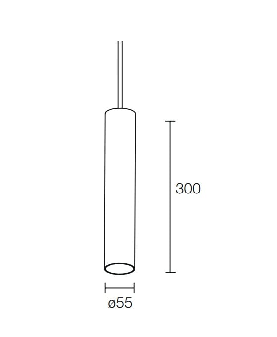 Sospensione da interno; su superficie (soffitto) con rosone; corpo in alluminio anticorodal, rosone in lamiera; finiture: nero; 1 power LED multichip; 6W - 230Vac; alimentatore integrato; incluso cavo in PVC trasparente di 2,50 m (FROR 2x0,75 Ø5,4 mm); flusso totale: 289 lm (3000K); ottiche: 25°, 34°, 60°; colore LED: bianco -3000K; grado di protezione: IP40; temperatura di esercizio: 0°C +45°C; sicurezza fotobiologica: gruppo rischio 1 secondo EN62471:2006; classe di isolamento II; peso 0,80kg; dimensioni ø55x300 mm.