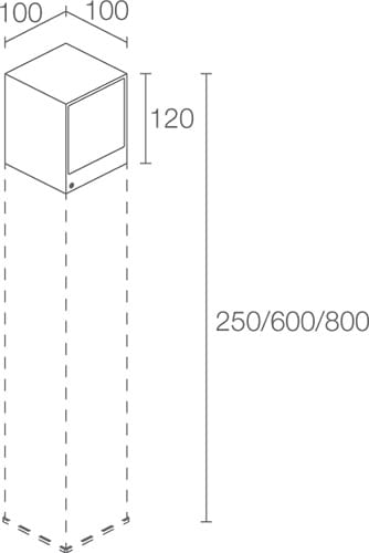 Paletto da esterno; monoemissione, su superficie (pavimento); corpo in alluminio lega EN AW 6060, schermo in vetro extrachiaro trasparente temprato serigrafato. 8,5W. 657 lm. 3000 K. Asimmetrica. Colore grigio