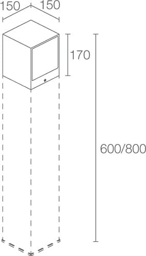 Paletto da esterno; monoemissione; su superficie (pavimento); corpo in alluminio lega EN AW 6060, schermo in vetro extrachiaro trasparente temprato serigrafato; finiture: corten. 16W. 3000 K. 1465 lm. Asimmetrica