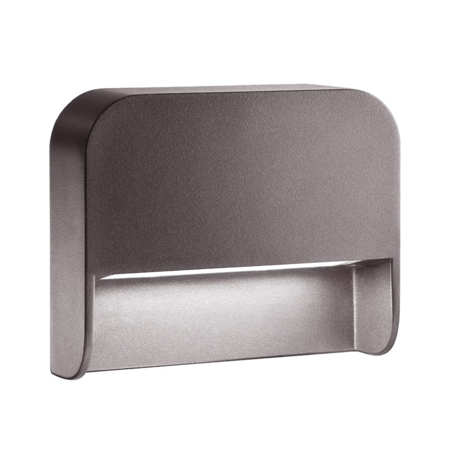 Segnapasso da esterno; su superficie (parete); corpo in alluminio pressofuso lega EN AB 47100, schermo in vetro; finitura: corten, power LED; 6W - 230Vac. 756 lm. 3000 K