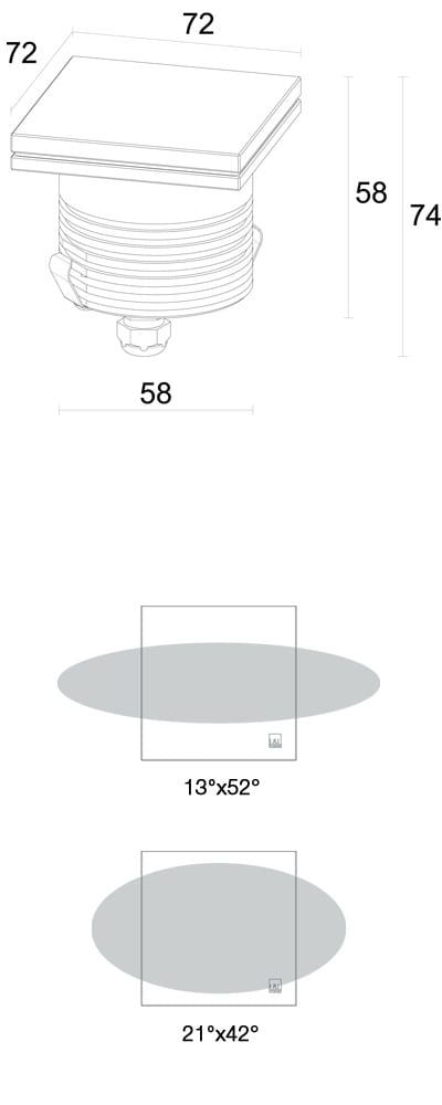 Incasso uplight da esterno; a incasso (soffitto, parete, pavimento). 5W. 4000 K. 8°. 311 lm