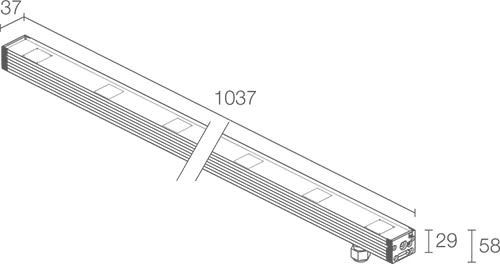 Profilo lineare da esterno; su superficie (soffitto, parete, pavimento) con staffe, a incasso (soffitto, parete, pavimento) con cassaforma; 30W. 1363 lm. RGB. 18°. L=1037 mm