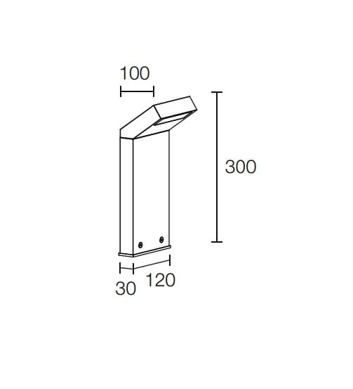 Paletto da esterno; su superficie (pavimento); corpo in alluminio lega EN AW 6026, schermo in vetro temprato microprismatizzato; finiture: antracite; 18 mid power LED; 10W - 230Vac; alimentatore integrato; incluso cavo in neoprene di 1,5 m H05RN-F 3x1,0 Ø7 mm; flusso totale: 645 lm (3000K); ottica diffusa; colore LED: bianco - 3000K; grado di protezione: IP65; grado di resistenza: IK08; temperatura di esercizio: -10°C +45°C; temperatura schermo: max 40°C (Ta 25°C); Glow Wire Test: 960°; sicurezza fotobiologica: gruppo rischio 1 secondo EN62471:2006; classe di isolamento I; peso 1,30 kg; dimensioni 120x30x300 mm (Plin 1.0).