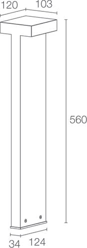 Paletto da esterno, biemissione; su superficie (pavimento); 24W; 230Vac; Flusso sorgente: 1242 lm. 3000K per emissione. A=560 mm. Colore Corten