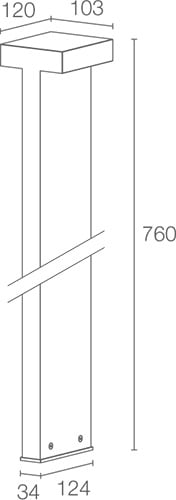 Paletto da esterno, biemissione; su superficie (pavimento); 24W; 230Vac; Flusso sorgente: 1242 lm. 3000K per emissione. A=760 mm