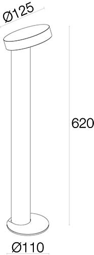 paletto da esterno; su superficie (pavimento); 8W; 230Vac;Flusso sorgente: 488 lm (3000K). A=800 mm