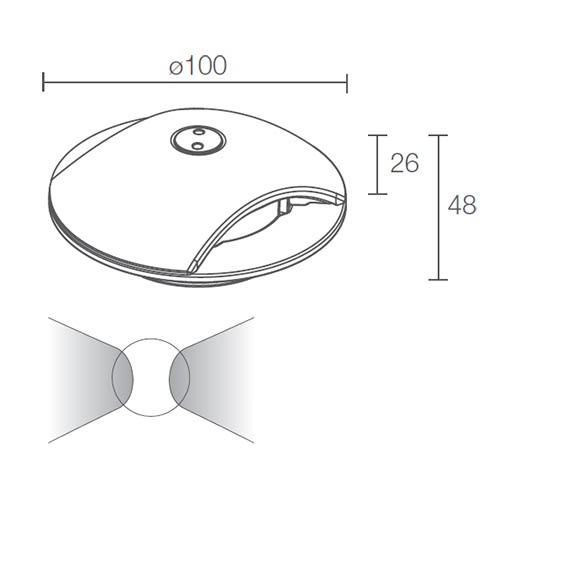 Incasso da esterno biemissione (Rondò 1.2); carrabile fino a 2000 kg; a incasso (pavimento); corpo in acciaio inox AISI 316L, schermo in policarbonato; finiture: microsabbiato; 1 power LED; 2W - 24Vdc; alimentatore integrato; incluso cavo in neoprene di 1,5 m H05RN-F 2x0,35/0,75 Ø6,3 mm; flusso totale: 65 lm (3000K); ottiche: radiale; colore LED: bianco - 3000K; grado di protezione: IP67; grado di resistenza: IK08; dotato di sistema IPS; temperatura schermo: max 40°C (Ta 25°C); sicurezza fotobiologica: gruppo rischio 1 secondo EN62471:2006; classe di isolamento III; peso 0,60 kg; dimensioni ø100x48 mm; dimmerazione disponibile mediante dimmer in linea 24Vdc; accessori: cassaforma WC0100, cassaforma WC0103, chiave per vite antivandalo WE0100.Lampda: LED 4W 24Vdc 3000K 65 lm. Ottiche: radiale.