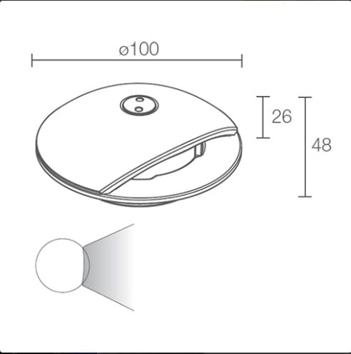 Rondò 2.1 - Incasso da esterno monoemissione; carrabile fino a 2000 kg; a incasso (pavimento); corpo in acciaio inox AISI 316L, schermo in policarbonato; finiture: microsabbiato; 1 power LED; 2W - 24Vdc; incluso cavo in neoprene di 1,5 m H05RN-F 2x0,35/0,75 Ø6,3 mm; flusso totale: 85 lm (3000K); ottiche: 10°; colore LED: bianco - 3000K; grado di protezione: IP67; grado di resistenza: IK08; dotato di sistema IPS; temperatura di esercizio: -20°C+45°C; temperatura schermo: max 40°C (Ta 25°C); sicurezza fotobiologica: gruppo rischio 1 secondo EN62471:2006; classe di isolamento III; peso 0,60 kg; dimensioni Ø100x48 mm; dimmerazione disponibile mediante dimmer in linea 24Vdc; accessori: cassaforma WC0100, cassaforma WC0103, chiave per vite antivandalo WE0100. LED 2W 3000K 85lm 10°.
