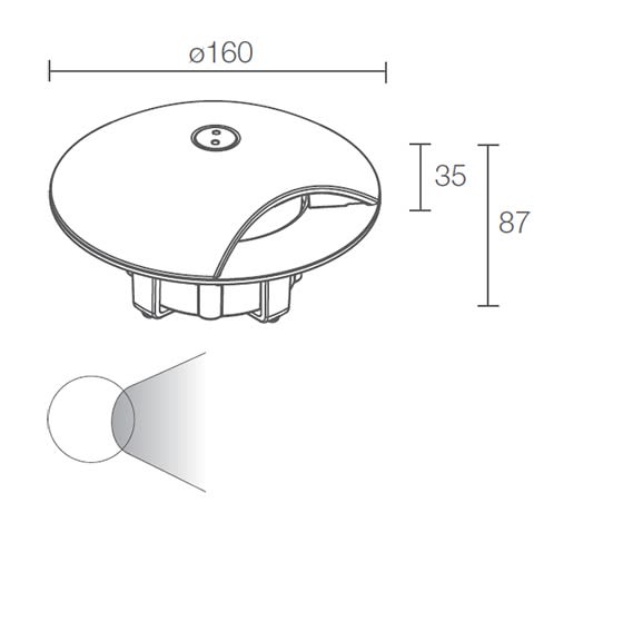 Incasso da esterno monoemissione (Rondò 3.1) carrabile fino a 2000 kg; a incasso (pavimento); corpo in acciaio inox AISI 316L, schermo in policarbonato; finiture: microsabbiato; LED; 3W - 230Vac; alimentatore integrato; incluso cavo in neoprene di 1,5 m H05RN-F 3x1,0 Ø7 mm; flusso totale: 90 lm (3000K) per emissione; ottiche: radiale; colore LED: 3000K, grado di protezione: IP67; grado di resistenza: IK08; dotato di sistema IPS; temperatura schermo: max 40°C (Ta 25°C); sicurezza fotobiologica: gruppo rischio 1 secondo EN62471:2006; classe di isolamento I (230Vac), peso 1,80 kg; dimensioni ø160x87 mm; dimmerazione disponibile mediante dimmer in linea 24Vdc; accessori: cassaforma WC0601, cassaforma WC0701, chiave per vite antivandalo WE0100.