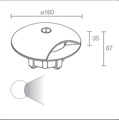 Rondò 3.1 - Incasso da esterno monoemissione; carrabile fino a 2000 kg; a incasso (pavimento); corpo in acciaio inox AISI 316L, schermo in policarbonato; finiture: microsabbiato; 1 power LED; 3W - 24Vdc; alimentatore non incluso; incluso cavo in neoprene di 1,5 m H05RN-F 2x0,75/0,75 Ø6,3 mm, flusso totale: 90 lm (3000K); ottiche: radiale; colore LED: bianco - 3000K; grado di protezione: IP67; grado di resistenza: IK08; dotato di sistema IPS; temperatura di esercizio: -20°C+45°C; temperatura schermo: max 40°C (Ta 25°C); sicurezza fotobiologica: gruppo rischio 1 secondo EN62471:2006; classe di isolamento III; peso 1,80 kg; dimensioni Ø160x87 mm; dimmerazione disponibile mediante dimmer in linea 24Vdc; accessori: cassaforma WC0601, cassaforma WC0701, chiave per vite antivandalo WE0100. LED 3W 3000K 90lm - Radiale.