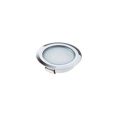Simply 1.0 - Incasso uplight da interno; a incasso (pavimento); corpo e ghiera in alluminio anodizzato lega EN AW 6082, schermo in policarbonato opale; finiture: cromato; 1 power LED; max 1W - max 220mA; inclusi 2 cavi unipolari di 0,30 m; collegamento in serie; ottica diffusa; colore LED: bianco - 5000K; grado di protezione: IP44; temperatura di esercizio: 0°C +45°C; temperatura schermo: max 40°C (Ta 25°C); sicurezza fotobiologica: gruppo rischio 1 secondo EN62471:2006; classe di isolamento III; peso 0,02 kg; dimensioni Ø26x10 mm; foro d'incasso Ø28 mm; volume tecnico per dissipazione: Ø40x10 mm; dimmerazione disponibile mediante alimentatore dimmerabile. LED bianco 1W 5000K 220mA.