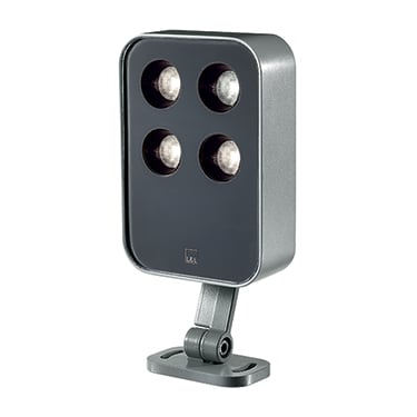 Proiettore orientabile da esterno; 16W - 230Vac 50Hz; 4 power LED; 3000K; CRI: 75÷85; ottica: 40°; flusso totale: 925 lm (3000K); corpo in pressofusione di alluminio in lega EN AW 47100; schermo in vetro temprato e serigrafato; finitura: grigio RAL9006; temperatura di esercizio: -10°C +45°C; temperatura vetro: max 40°C (Ta 25°C); IPS integrato nel pressacavo; PCB tropicalizzati; NTC controllo della temperatura a bordo; grado di protezione contro i liquidi e i corpi solidi: IP66; grado di resistenza all'impatto IK06; Glow wire test: 960°; sicurezza fotobiologica: gruppo rischio 1 secondo EN62471:2006; montaggio su superfici fissando la piastra con viti e tasselli, a terra tramite picchetto opzionale; classe di isolamento I (230Vac); peso 1,60kg; dimensioni 254x123x77mm; collegamento 230Vac 50Hz; alimentatore integrato; accessori disponibili: picchetto WP0300, nido d'ape WH5020, schermo antiabbagliamento WB5020H.