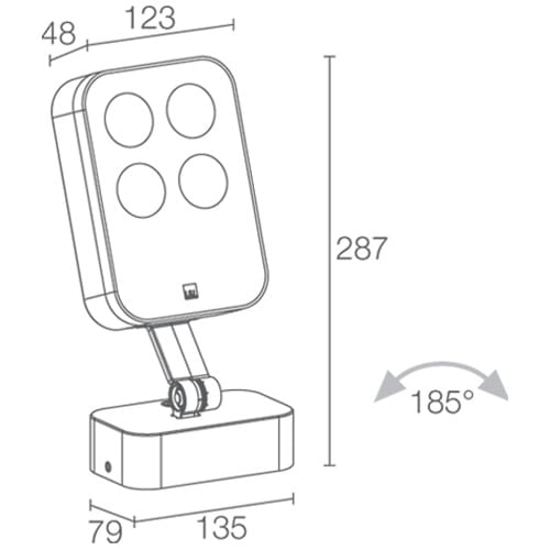 Proiettore da esterno; su superficie (soffitto, parete, pavimento, picchetto); corpo in alluminio pressofuso lega EN AB 47100, schermo in vetro extrachiaro temprato e serigrafato. RGBW. 20W. 1059 lm. 32°. bianco