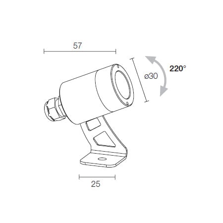 SPOT 1.6 - Proiettore da esterno (non adatto per immersione) orientabile 220°; su superficie (soffitto, parete, pavimento, picchetto); corpo e ghiera in acciaio inox AISI 316L; 1 power LEDmax 2W - 24Vdc; incluso cavo in neoprene di 1,5 m H05RN-F 2x0,35/0,75 Ø6,3 mm; ottiche: 40°; colore LED: bianco - 4000K; grado di protezione: IP68; grado di resistenza: IK08; dotato di sistema IPS; temperatura di esercizio: -20°C+45°C; Glow wire test: 960°; sicurezza fotobiologica: gruppo rischio 1 secondo EN62471:2006; classe di isolamento III; peso 0,27 kg; dimensioni Ø30x57mm; dimmerazione disponibile mediante dimmer in linea 24Vdc; accessori: picchetto WP0100, cannocchiale standard in acciaio inox WB0320I, cannocchiale asimmetrico in acciaio inox WB0321I, nido d’ape WH0101. LED 2W 4000K 40°.
