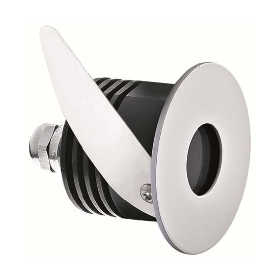 Segnapasso da esterno; a incasso (parete); corpo in alluminio, ghiera in acciaio inox; finiture: satinato; 1 power LED; max 2W - max 500mA; incluso cavo in neoprene di 1,5 m H05RN-F 2x0,35/0,75 Ø6,3 mm; collegamento in serie; flusso totale: 34 lm (3000K, 500mA); ottica diffusa; colore LED: bianco - 4000K; grado di protezione: IP65; dotato di sistema IPS; temperatura di esercizio: -10°C +45°C; sicurezza fotobiologica: gruppo rischio 1 secondo EN62471:2006; classe di isolamento III; peso 0,25 kg; dimensioni ø55x52 mm; foro d'incasso: ø45 mm; volume tecnico per dissipazione: ø70x90 mm; dimmerazione disponibile mediante alimentatore dimmerabile; accessori: cassaforma WC1500, cassaforma WC1501. LED 2W 4000K.