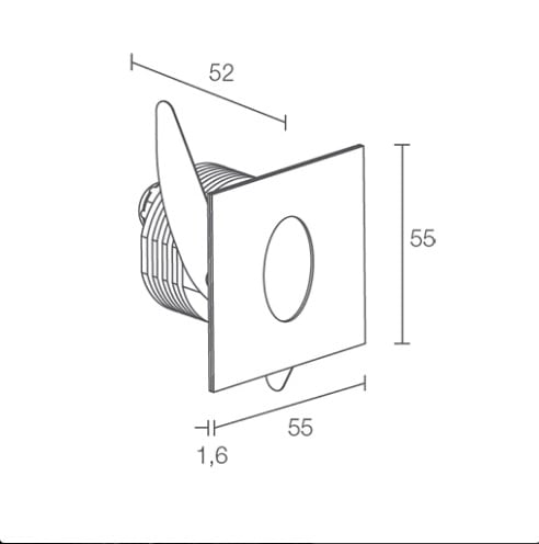Step Outside 6.2 - Segnapasso da esterno; a incasso (parete); corpo in alluminio, ghiera in acciaio inox; finiture: satinato; 1 power LED; max 2W - max 500mA; incluso cavo in neoprene di 1,5 m H05RN-F 2x0,35/0,75 Ø6,3 mm; collegamento in serie; ottica diffusa; colore LED: bianco - 4000K; grado di protezione: IP65; dotato di sistema IPS; temperatura di esercizio: -20°C+45°C; sicurezza fotobiologica: gruppo rischio 1 secondo EN62471:2006; classe di isolamento III; peso 0,24 kg; dimensioni 55x55x52 mm; foro d'incasso: Ø45 mm; volume tecnico per dissipazione: Ø70x90 mm; dimmerazione disponibile mediante alimentatore dimmerabile; accessori: cassaforma WC1500, cassaforma WC1501. LED bianco 2W 4000K 500mA.