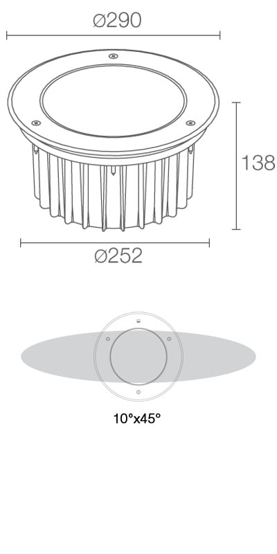 Incasso uplight da esterno; a incasso (pavimento); 37W; 230Vac; Flusso sorgente: 3402 lm. 3000 K. 37°