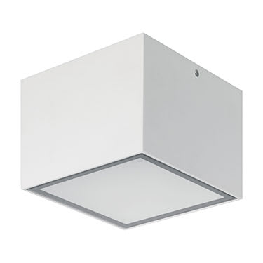 Apparecchio a plafone da interno o esterno; 6W - 230Vac 50Hz; matrice di power LED; 3000K; CRI: >80; luce diffusa; flusso totale: 671 lm (3000K); corpo in alluminio presso-fuso lega EN AB 47100, schermo in vetro extrachiaro temprato con trattamento di sabbiatura per un effetto dot-less; finitura: Grigio; trattamento di verniciatura per esterni con polveri epossidiche, pre-trattamento antiossidante con processo Nanoceramico per la passivazione in preverniciatura di materiale ferroso, zincato e alluminio; resistenza al test di nebbia salina di 1000H; temperatura di esercizio: 0°C +45°C; grado di protezione contro i liquidi e i corpi solidi: IP65; grado di resistenza all'impatto IK06; Glow wire test: 960°; sicurezza fotobiologica: gruppo rischio 1 secondo EN62471:2006; montaggio con base posteriore fissata con viti e tasselli, fornito con muffola stagna al gel per cablaggi in esterni; classe di isolamento I; peso 2,10kg; dimensioni 150x150x100mm; collegamento 230Vac 50Hz; alimentatore integrato.