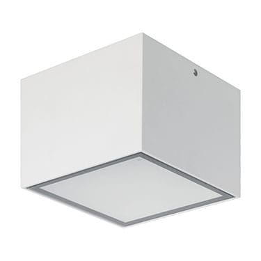 Apparecchio a plafone da interno o esterno; 6W - 230Vac 50Hz; matrice di power LED; 4000K; CRI: >80; luce diffusa; corpo in alluminio presso-fuso lega EN AB 47100, schermo in vetro extrachiaro temprato con trattamento di sabbiatura per un effetto dot-less; finitura: bianco opaco; trattamento di verniciatura per esterni con polveri epossidiche, pre-trattamento antiossidante con processo Nanoceramico per la passivazione in preverniciatura di materiale ferroso, zincato e alluminio; resistenza al test di nebbia salina di 1000H; temperatura di esercizio: 0°C +45°C; grado di protezione contro i liquidi e i corpi solidi: IP65; grado di resistenza all'impatto IK06; Glow wire test: 960°; sicurezza fotobiologica: gruppo rischio 1 secondo EN62471:2006; montaggio con base posteriore fissata con viti e tasselli, fornito con muffola stagna al gel per cablaggi in esterni; classe di isolamento I; peso 2,10kg; dimensioni 150x150x100mm; collegamento 230Vac 50Hz; alimentatore integrato.
